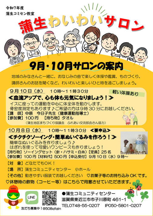【申込方法】 蒲生コミュニティセンター(☏0748-55-0207)